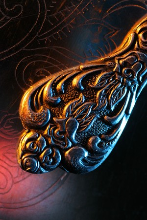 Chinese knot on a dark background with a beam of light from above