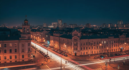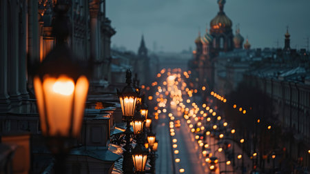 wonderful view of the roofs of the city and attractions in the light in the city of St. Petersburg.
