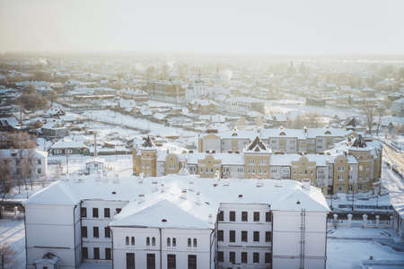 winter houses top view city Tobolsk Siberia historical buildings