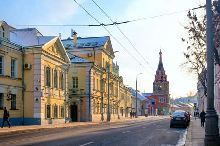 Moscow, Russia - December 1, 2018: Ancient mansions and church of a 17-th century on Bolshaya Polyanka Street in Moscow