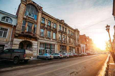 Central district of Rostov-on-Don. Beautiful architecture of historical buildings, Rostov-on-Don, Russia - Feb, 15, 2021.
