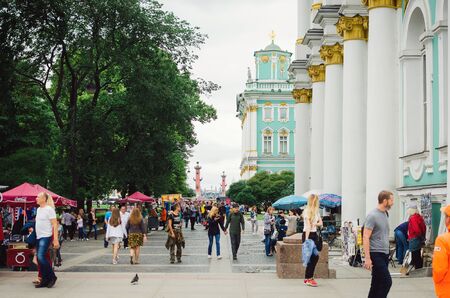 Saint Petersburg, RUSSIA - July 08, 2018:Tourists walk in St. Petersburg along the street near the Hermitage.