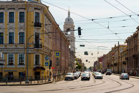 Saint Petersburg, RUSSIA - July 13, 2018: Cars and pedestrians on the streets of St. Petersburg.