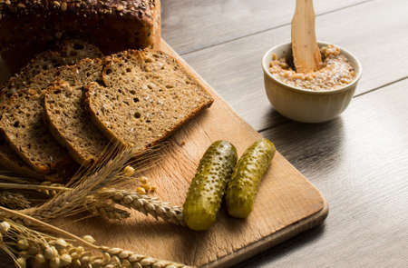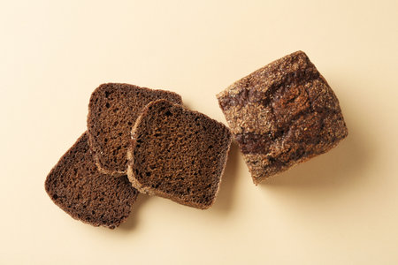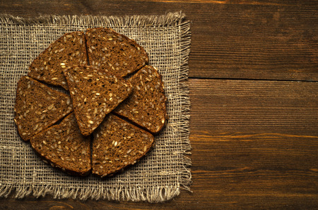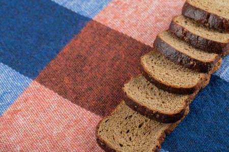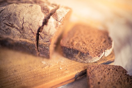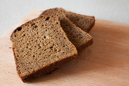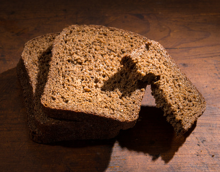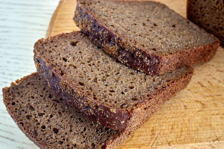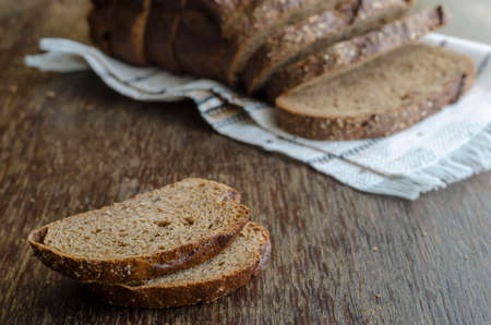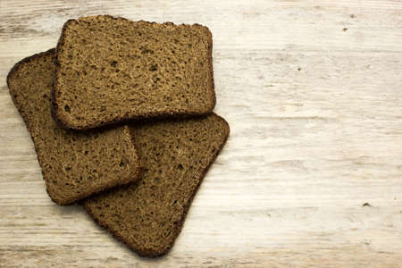 Natural background. Still life- cut slices of rye bread on a wooden table