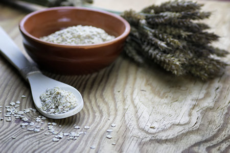 Oatmeal grain on the table.