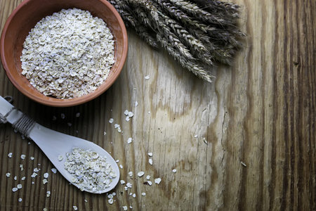 Oatmeal placed on a wooden table
