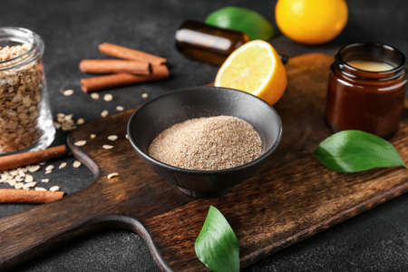 Natural ingredients for homemade cosmetics on dark background