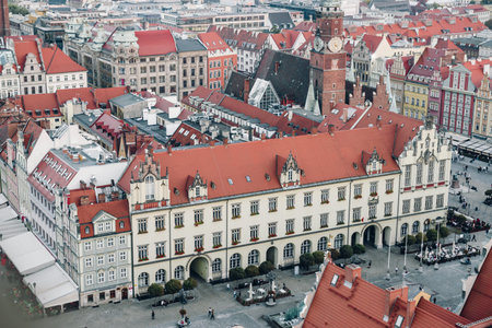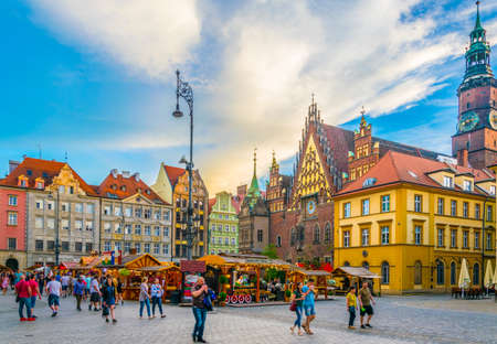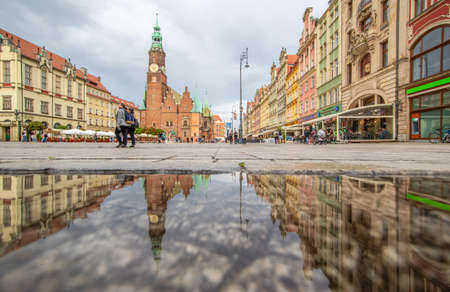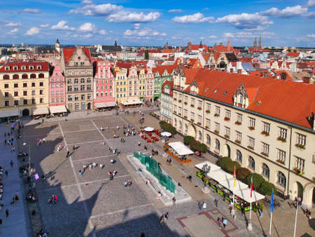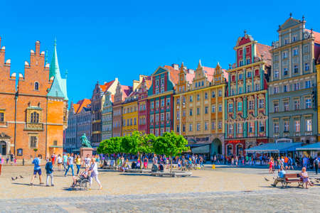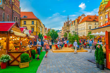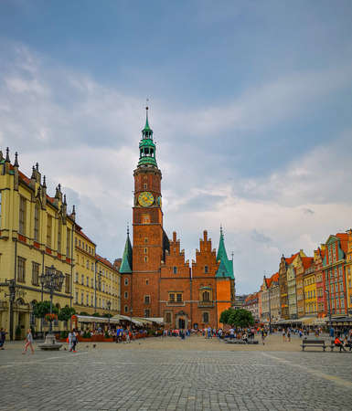 WROCLAW, POLAND - July 17, 2019: Market Square in Wroclaw Old Town. Wroclaw is a historical capital of Lower Silesia, city with one of the bigest Market squares in Europe.