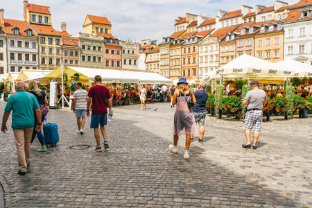 Warsaw, Poland - July 16, 2023. Old Town Market Square in Warsaw is a bustling local gathering place and a symbol of the city's resilience