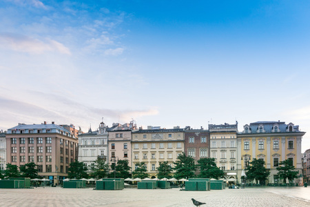 Old city center of Krakow, Poland. Sunrise view with Market square and St. Mary cathedral