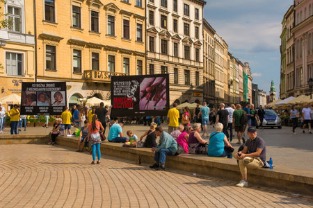 KRAKOW, POLAND - August 27, 2017: street view of downtown Krakow, Poland