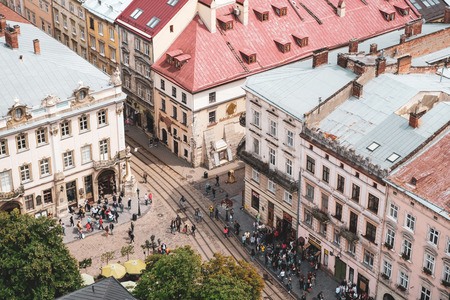 Lviv Ukraine, June 26th 2018. Landscape of Lviv from the top of the tower of City Hall.