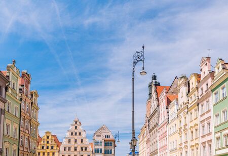 WROCLAW, POLAND, MAY 28, 2017: Colourful houses at Rynek, the picturesque square in central Wroclaw, Poland