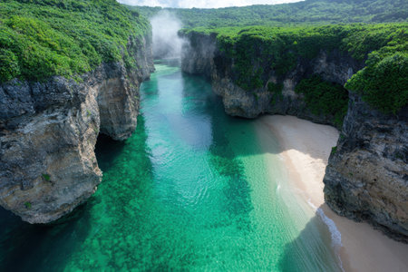 Stunning tropical lagoon with turquoise waters and lush vegetation