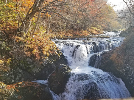 Autumn colors at the lower Ryuzu Waterfall basin in Nikko,Tochigi Prefecture,Japan.