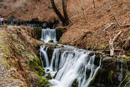 Karuizawa, Kitasaku District, Nagano, Japan - APR 15, 2024: Shiraito falls is located in Karuizawa, Kitasaku District, Nagano, Japan.