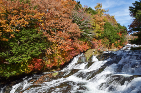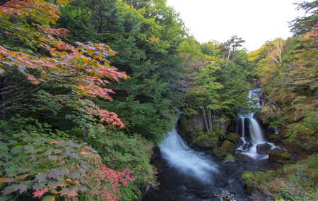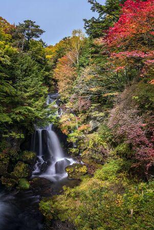 Autumn fall forest at Ryuzu waterfall at Nikko Tochigi Japan
