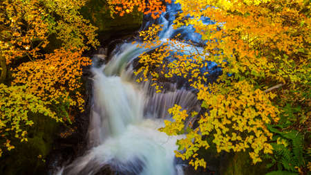 Autumn leaves and waterfalls in Nikko, Japan. Autumn season.