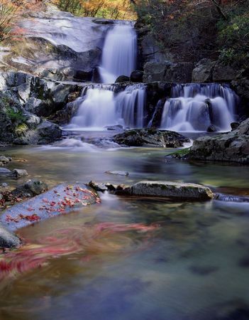 The autumn leaves and waterfall, there are extremely beautiful