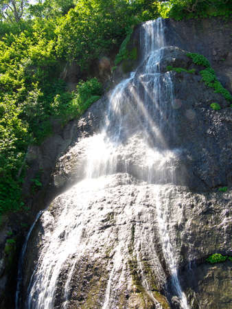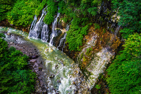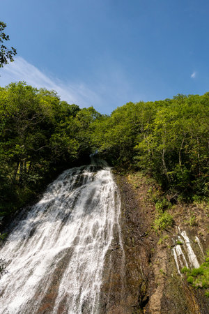 Hokkaido,Japan - June 21, 2021: Seseki waterfall in Shiretoko national park in summer