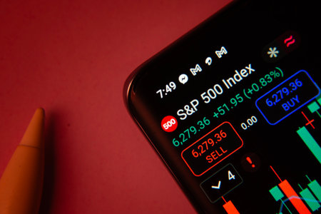 Dhaka, Bangladesh- 08 Sep 2025: Close-up of a phone screen showing S&P 500 Index stock market data with a candlestick chart.