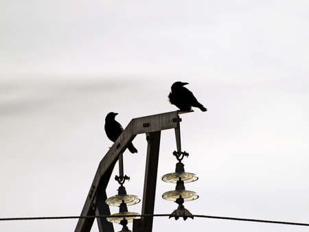 Pair of crows on an electric tower