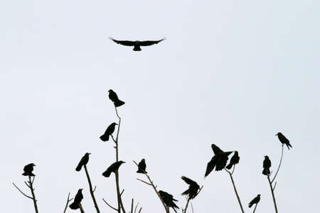 Parliament of Crow Gathering at Dusk in Winter - Sometimes Seen as Spooky or Ominous - Like in a Classic Horror Movie