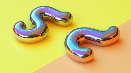 A vibrant collection of glossy, colorful letters intertwines in a playful, abstract design, creating a joyful and whimsical atmosphere. The shiny surfaces reflect light, enhancing the lively hues of pink, blue, and orange, inviting creativity and imagination.