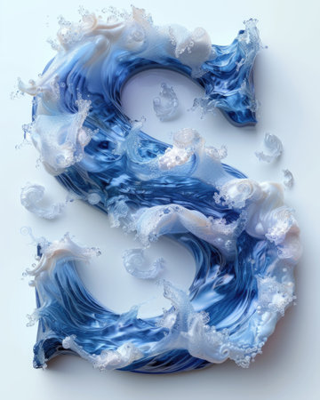 A stunning, translucent letter S radiates vibrant colors and shimmering reflections, creating a captivating visual effect. The interplay of light and bubbles within the letter adds a magical touch, making it an eye-catching centerpiece for creative projects.