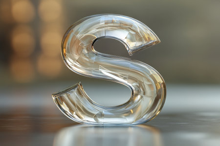 A letter S made of glass is sitting on a table