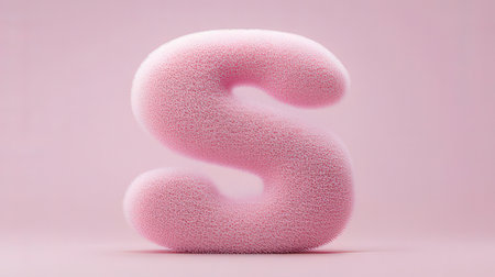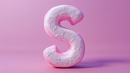 Pink sponge letter S on pink background. 3d rendering. Typographic concept.