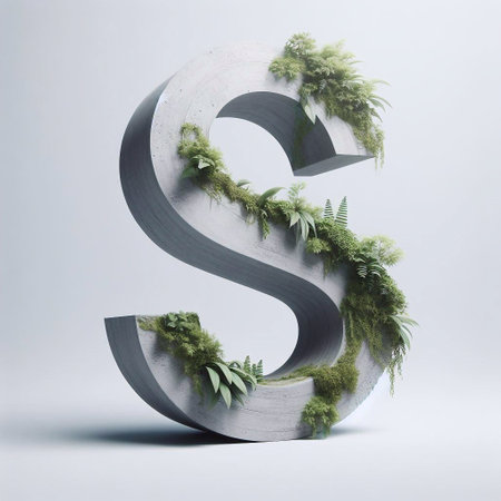 S letter shape 3D Lettering That Blends Concrete With Nature. AI generated illustration