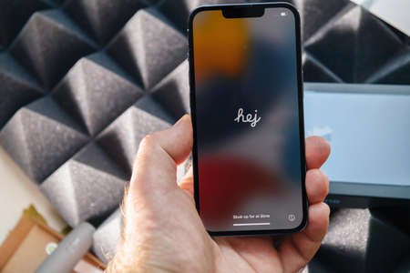 iPhone 13 Pro Max with Hej text translated from Swedish as hello