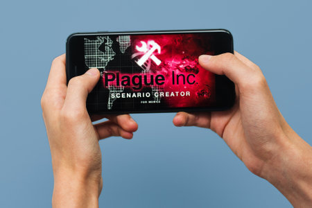 Swirling showing person using smartphone to view augmented reality with swirling light effects....