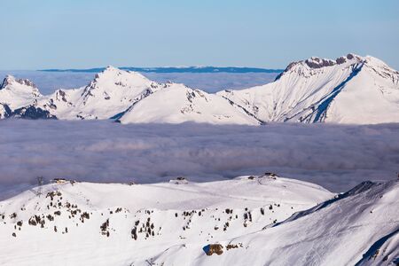 panorama of skiarea in Portes du Soleil region, Morzine - Avoriaz, France