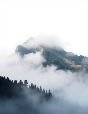 A misty morning in the mountains of Switzerland, with rolling hills and forests shrouded by fog, creating an ethereal atmosphere. The photograph captures the serene beauty of nature's tranquility. --ar 3:2 --v 6.1 Job ID: 7b93aa38-cba9-4afe-9609-19f108f7f677