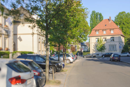 pedestrian woman walking in French city of Strasbourg - tilt-shift lens
