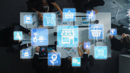 people using smart phone,laptop, online banking payment communication to use network technology 4.0,internet wireless application