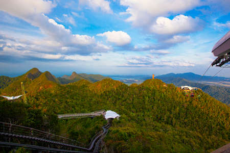 Langkawi, Malaysia - Apr 30, 2018. Mountainscape with cable car on Langkawi Island. View from the observation deck.