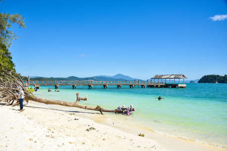TUNKU ABDUL RAHMAN PARK, MALAYSIA - FEBRUARY 24, 2018: People at a pier at Gaya Island in Tunku Abdul Rahman National Park, Sabah, Malaysia