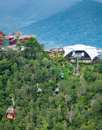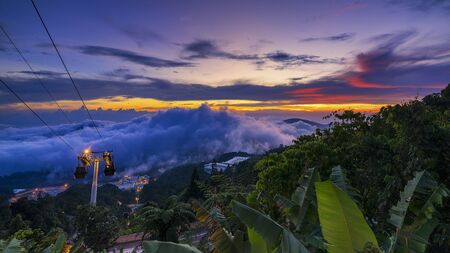 GENTING HIGHLAND, MALAYSIA - OCTOBER 3, 2019 : Awana Skyway cable car, one of Genting Highland's most popular attractions, providing a method of travel between Awana Station and SkyAvenue mall