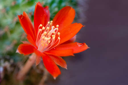 cactus red flower close up in the sunshine in my garden