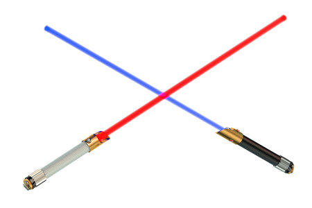 Crossed light sabers isolated on white background