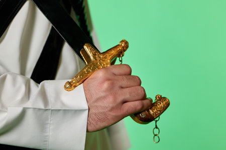 Traditional Saudi out-feet on chromakey. Arabian long saber - saif.