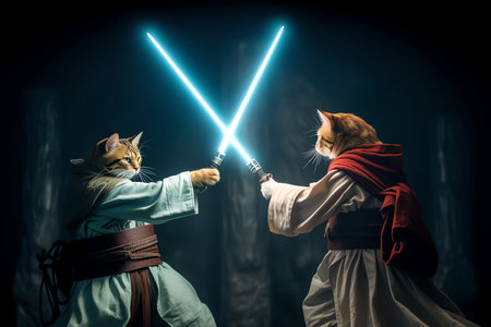jedi cats duel,, AI generated image