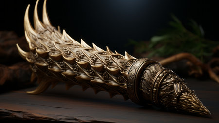 sword with a golden hilt ribbed close-up, saber of the warlord