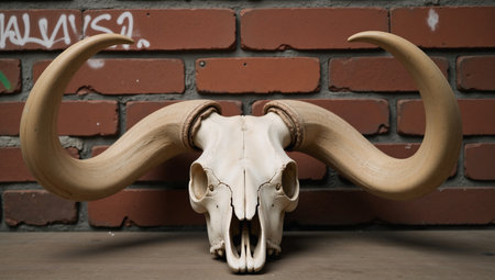 old ram skull in underground subway