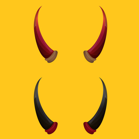 vector Red and black devil, demon, satan horns isolated on orange background. Halloween evil horns set and collection