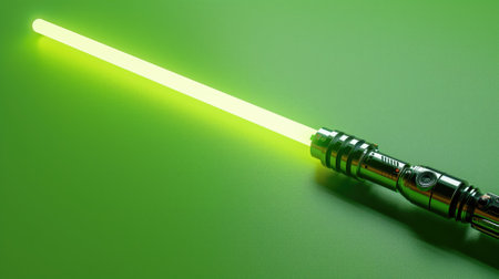 Illuminated green lightsaber on background