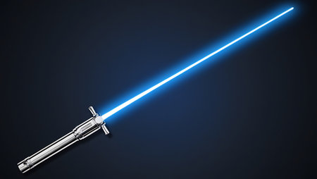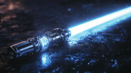 Blue galactic lightsaber tool. Celestial azure glowing handle sabre. Generate ai